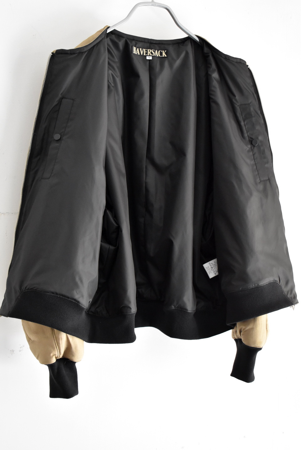 表面は野生に近いタッサーシルク柞蚕(さくさん)シルク100%を使用。糸が細く光沢のある家蚕(かさん)シルクに比べ糸が太く、コットンのような風合いで光沢のあまり目立たないのが特徴です。中綿にナイロンウールのキルト状に織りあげられたハバーサックオリジナル素材です。
