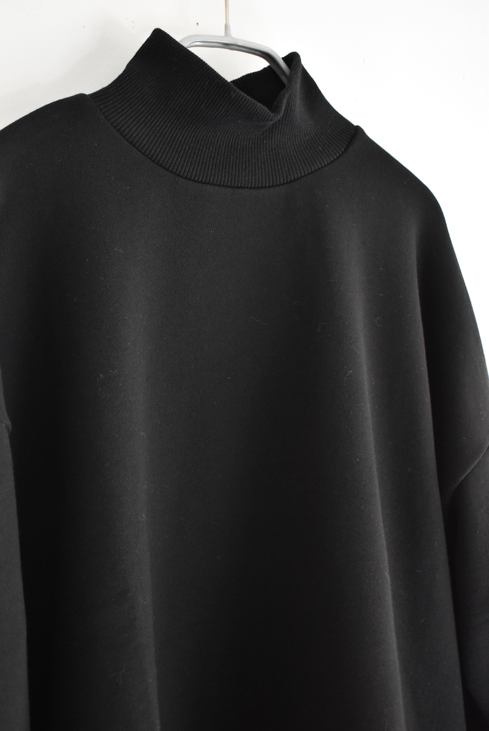 リブネック仕上げのハイネックスウェットプルオーバー。
