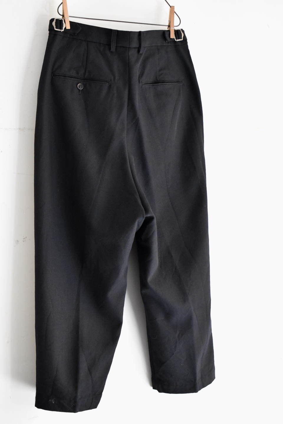 深いアウトタックフロントでゆったりとした腰廻りと深い股上でルーズ感のあるサルエル風8〜9分丈パンツ。
