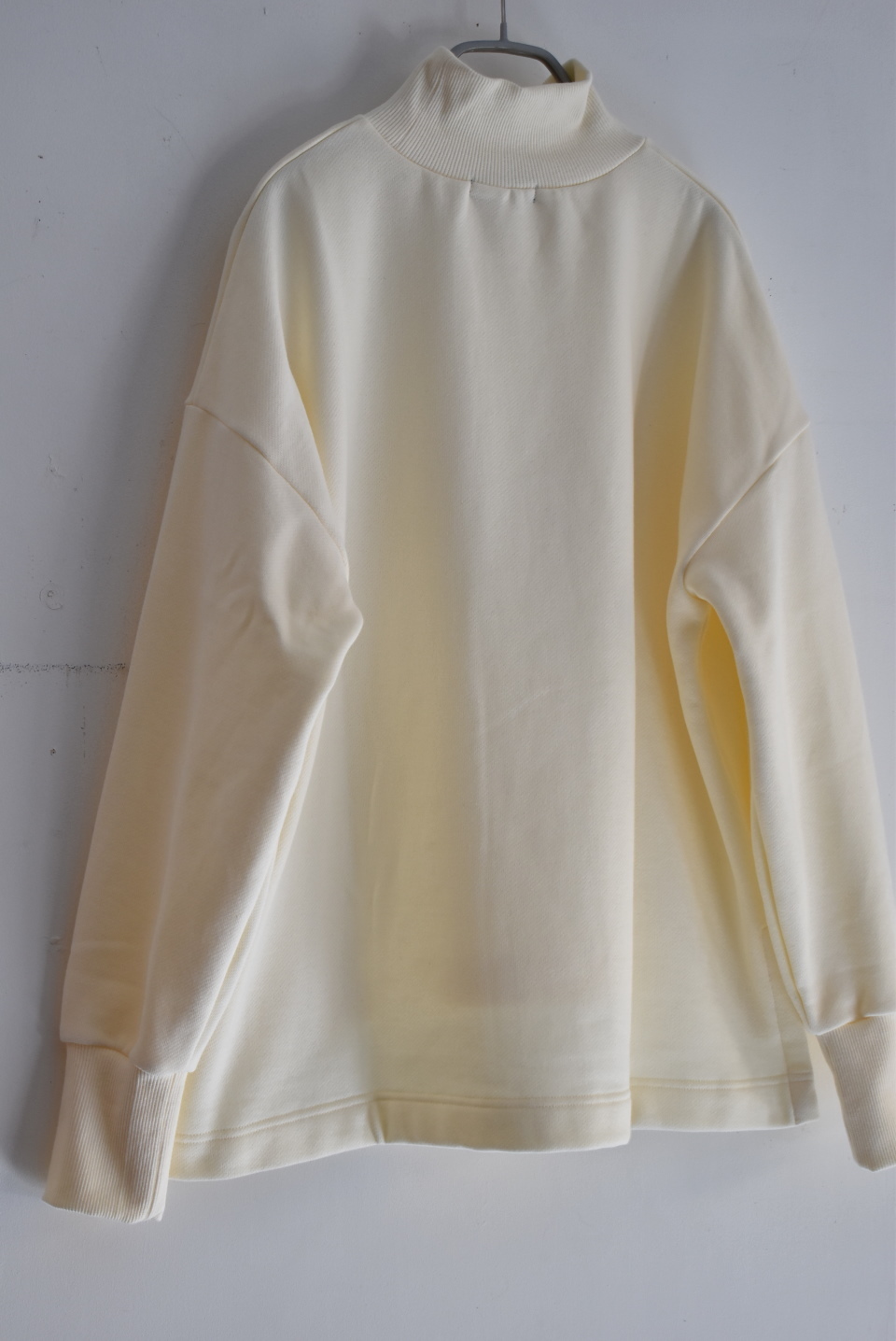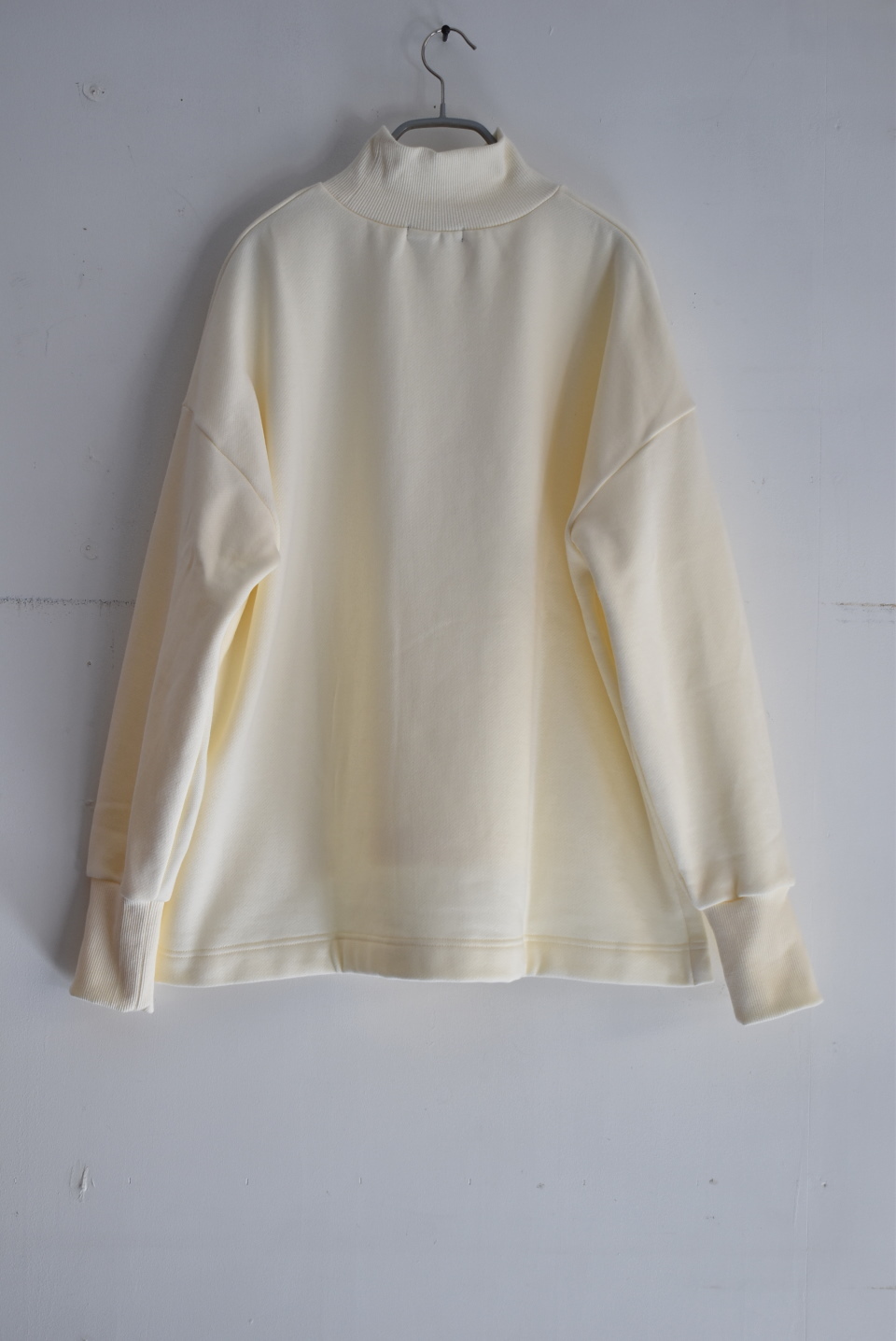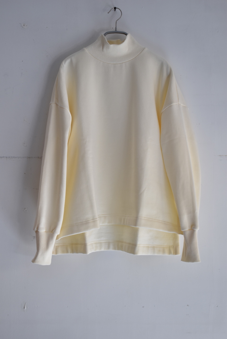 リブネック仕上げのハイネックスウェットプルオーバー。