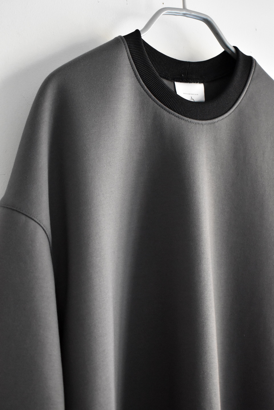 ネックと袖に黒リブ配色のクルーネックプルオーバー。プレーンでシンプルなデザインの、オーバーサイジングでゆったりとしたシルエットです。