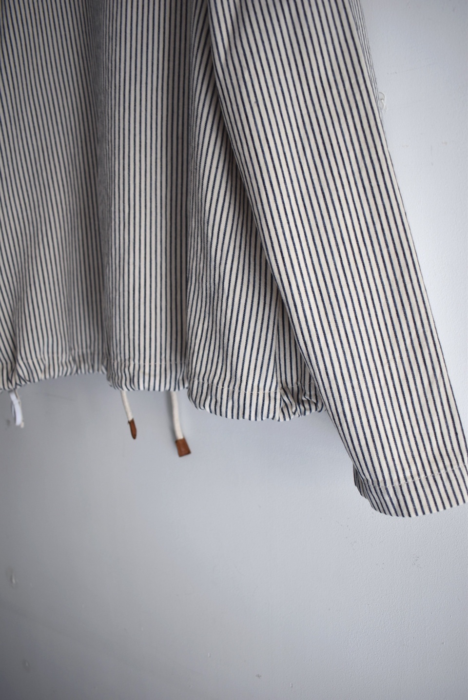 カジュアルな大きめのアウトポケットと、裾のドローコードは絞ってブルゾン風としても使えるライトアウターです。